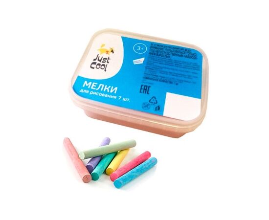 Набор из семи мелков для рисования упакован в пластиковый контейнер, в котором их можно легко и удобно транспортировать. Контейнер поможет ребенку не перепачкаться и не поломать мелки при перенесении их в другое место.