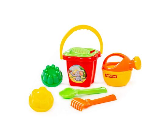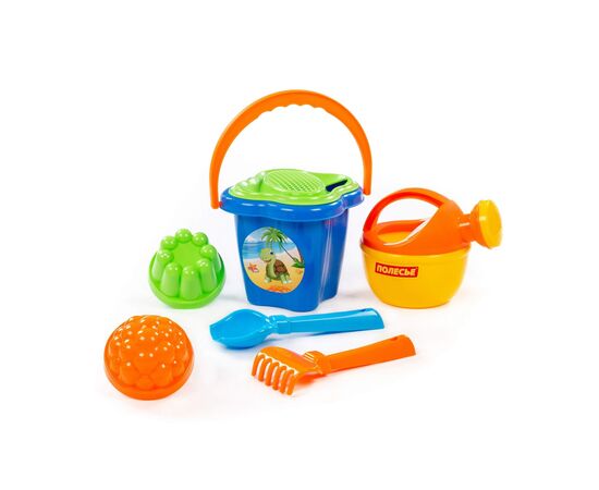 Набор №158: ведро-цветок среднее, ситечко-цветок, совок №2, грабельки №2, 2 формочки, лейка малая №4
