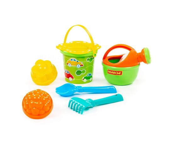 Набор №180: ведро малое с накл, ситечко-цветок, совок №2, грабельки №2, 2 формочки, лейка малая №4