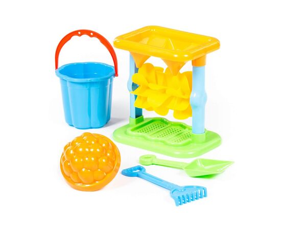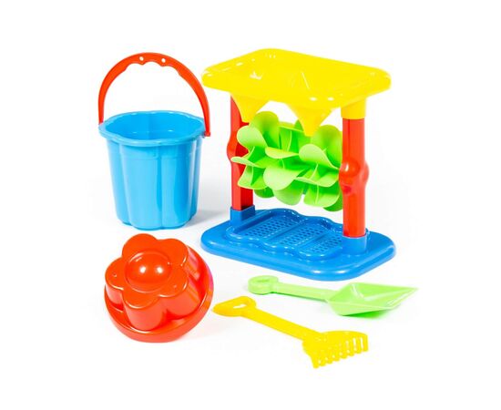 Песочная мельница №2 с основанием, ведро цветок малое, лопатка малая №3, грабельки малые №3, 1 формочка