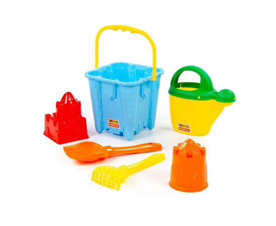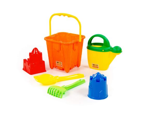 Набор №553: ведро-замок бол. №2, лопатка №5, граб. №5, форм. (замок башня + замок квадр.), лейка №10