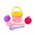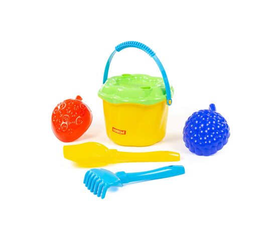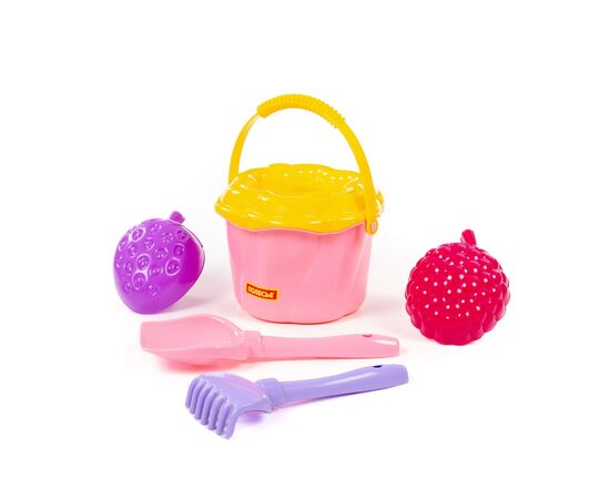 Набор №662: ведро-цветок сред. №4, сито-цветок сред. №4, лопатка №5, граб. №5, форм. (клубника+мал.)