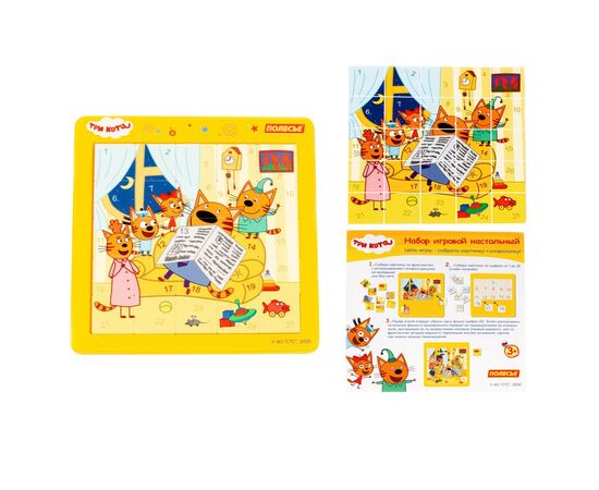 Набор включает в себя красочное игровое поле и фишки с изображениями персонажей. Цель игры — собрать полную картинку семьи котов, передвигая фишки по полю. Игра развивает логическое мышление, внимание и усидчивость. Простые правила и яркий дизайн делают её отличным развлечением для детей от 3 лет. Играйте всей семьёй и помогите котятам воссоединиться!
