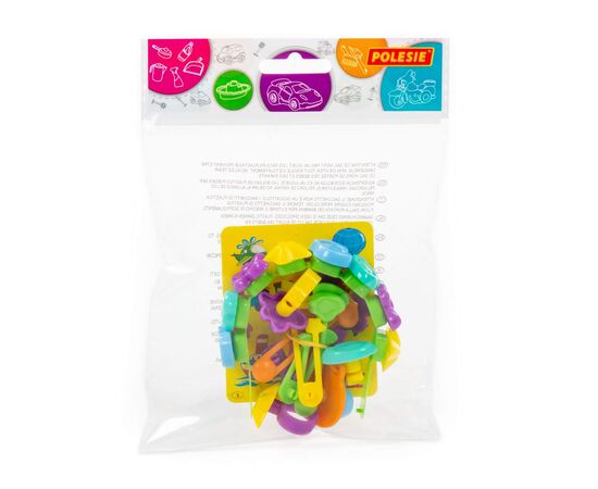 В набор входят: основа для браслета - 1 шт., основа для кольца – 1 шт., основа для клипс – 2 шт., основа для кулона – 1 шт., элементы для украшения – 19 шт.