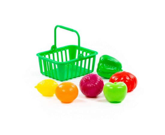 Набор продуктов укомплектован в корзинку, которая позволяет с удобством перемещать и хранить игрушечные продукты. В набор входят: