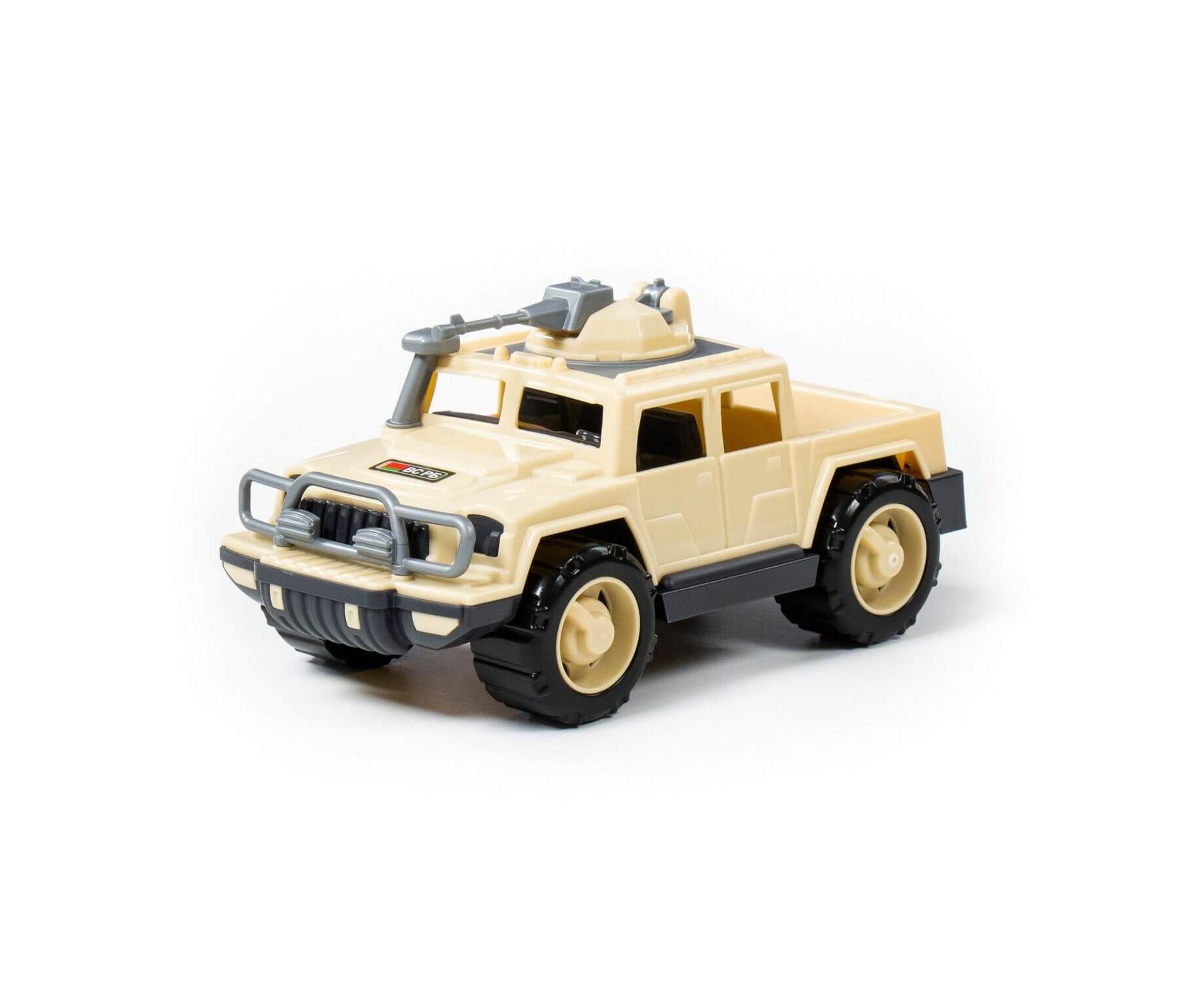 Игрушка имеет реалистичный дизайн, округлую форму деталей. Автомобиль-пикап военный "Разведчик-Сафари" с одним пулемётом изготовлен в бежевом цвете, имеет вместительный открытый багажник, на крыше автомобиля установлен пулемёт (его можно вращать).