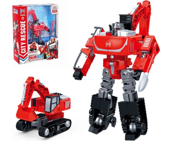 Две игрушки в одной надолго заинтересуют ребенка. Собирать и разбирать игрушку можно сколько угодно раз. В свободное от битв время этот могучий робот превращается в пожарный экскаватор, но стоит только захотеть — он тут же трансформируется в межгалактического воина. Детям непременно захочется так же пополнить свой парк техники трансформерами «City Rescue» пожарной машиной, пожарным микроавтобусом, пожарным краном и пожарным трактором-погрузчиком. Ведь из 5 моделей можно сделать одного большого робота.