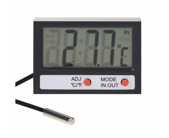 Термометр электронный REXANT комнатно-уличный с часами способен одновременно измерять два значения температуры воздуха: в помещении и на улице (с помощью дистанционного датчика). Оснащен часами. Имеет настольную подставку и отверстие для крепежа на стену.