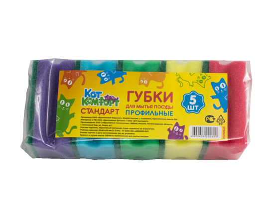 Губки для мытья посуды КотКомфорт Стандарт 85х64х42 мм (профильные) (5 шт в уп)