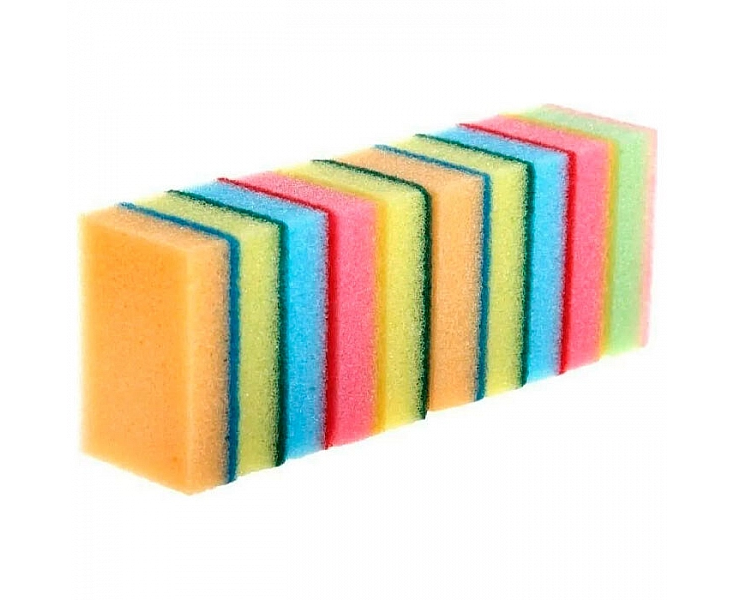 Губки для посуды изготовлены из пенополиуретана, который способствует активному пенообразованию и помогает значительно экономить моющие средства. С губки легко удаляются жир и остатки пищи.