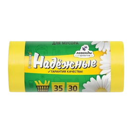 Мешки для мусора с ушками, 35 л, 30 шт, "НАДЕЖНЫЕ", желт, РОМАШКА