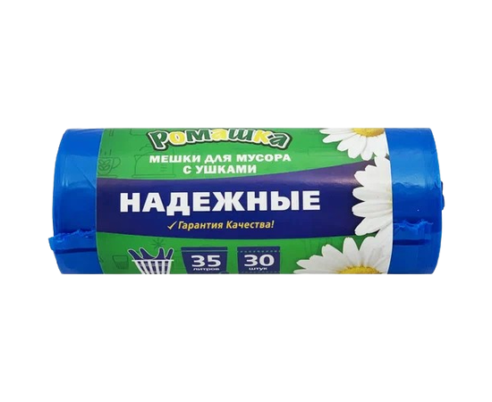 Мешки для мусора в рулоне НАДЕЖНЫЕ (30 шт; 50x57.5 см; 35 л; ПСД; 12 мкм; синие с ушками) Ромашка используются для строительных и ремонтных работ, хозяйственных нужд в домашнем хозяйстве, в офисе, в производственных и торговых помещениях, индустрии клининговых услуг, красоты и здоровья. Высокое качество полиэтилена среднего давления делает его прочным и практичным. Мешки предлагаются в компактных упаковках в рулонах. Рулон пакетов удобен в использовании и не занимает много места.
