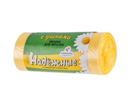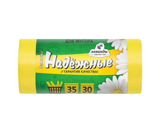 Мешки для мусора НАДЕЖНЫЕ (30 шт; 35 л; желтыес ушками) Ромашка ВЛ04030У используются для хозяйственных нужд в домашнем хозяйстве, в офисе, в производственных и торговых помещениях, индустрии клининговых услуг, красоты и здоровья.