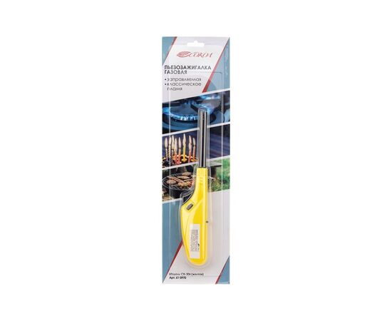 Пьезозажигалка бытовая газовая с классическим пламенем желтая СК-306 СОКОЛ