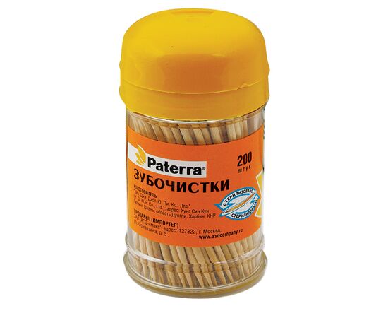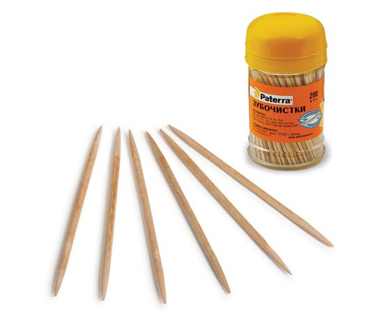 Зубочистки деревянные, 200 шт. в пластиковой баночке, PATERRA