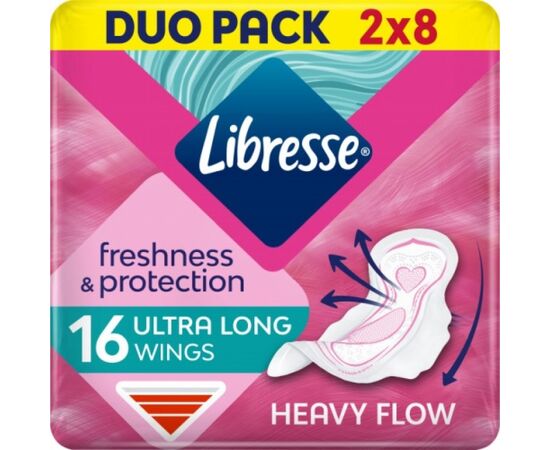 LIBRESSE Ultra Супер с мягкой поверхностью женские ультратонкие гигиен. прокладки 16шт - имеют уникальную форму, что позволяет им идеально повторять контуры женского тела, а крылышки надежно фиксируют прокладку на белье. Прокладки мягкие, как хлопок и защищают кожу от раздражения, а благодаря новой технологии моментально впитывают. Кроме того, уникальная индивидуальная упаковка с технологией Roll Press Go позволяет гигиенично и незаметно утилизировать использованную прокладку.