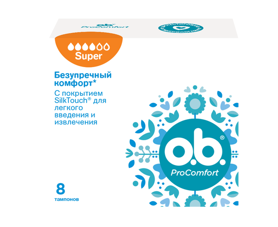 Тампоны o.b. ProComfort разработаны таким образом, что объединяют в себе технологию спиралевидных желобков для надежной защиты и уникальное шелковистое покрытие SilkTouch для комфортного введения. Благодаря шелковистому покрытию SilkTouch тампон легко скользит, обеспечивая легкое и мягкое введение. Упаковка 8 шт.