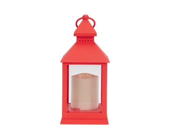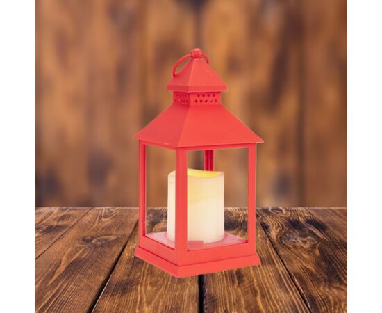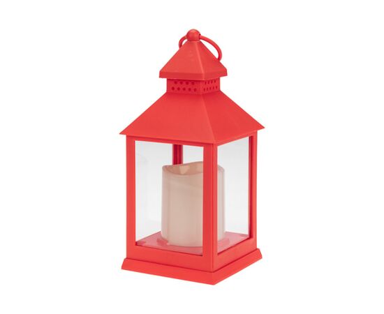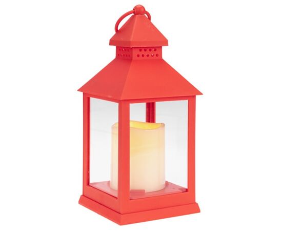 Декоративный фонарь со свечкой, 10.5х10.5х24 см, красный корпус,цвет сечения теплый белый