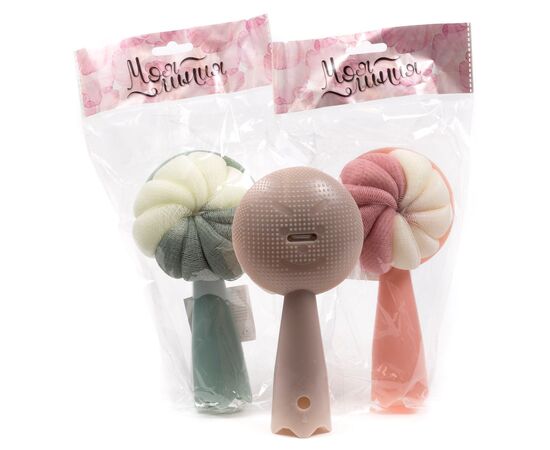 МОЧАЛКА полиэтиленовая с пластмассовой ручкой 9*18 см. Используется для мытья тела.