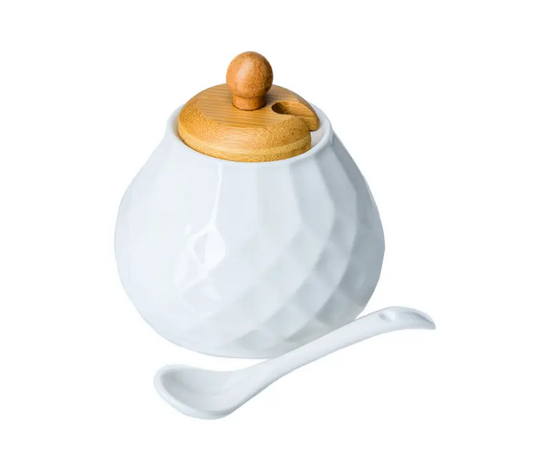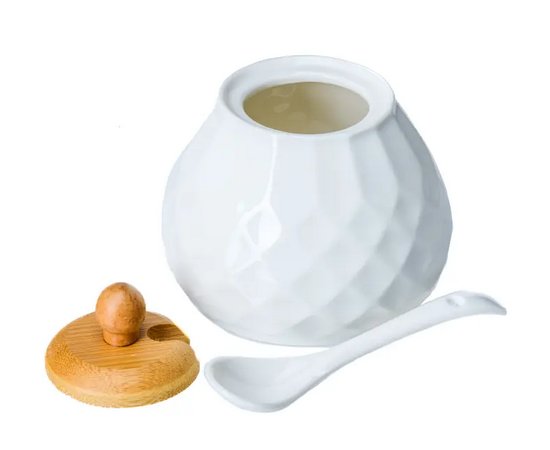 САХАРНИЦА фарфор/бамбук с ложкой 300 мл/9*9*9,5 см PJ02196-A