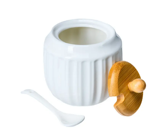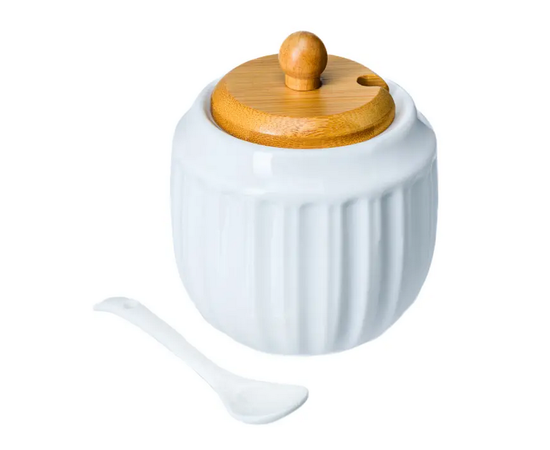 САХАРНИЦА фарфор/бамбук с ложкой 330 мл/8,5х8,5х9 см