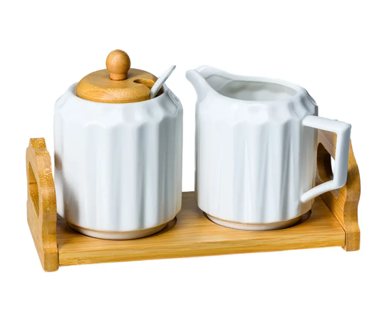 САХАРНИЦА + СЛИВОЧНИК фарфор. на бамбуковой подст. 20,5*9,5*12,5 см
