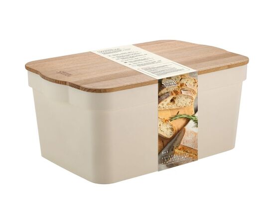Хлебница удобна и практична в использовании благодаря легкому корпусу и крышке 3 в 1. Трендовая форма хлебницы и деревянная крышка идеально дополнят интерьер Вашей кухни. Крышка изготовлена из дерева породы бук, обратную сторону можно использовать для нарезки хлебобулочных изделий, лицевую - для подачи закусок. Объём 7,5 л позволяет хранить хлебобулочные изделия для всей семьи, при этом хлебница не занимает много места. Крышка плотно прилегает к корпусу, тем самым хлеб всегда остается свежим и вкусным. Хлебницей приятно пользоваться засчёт soft-touch покрытия корпуса. Удобно взять с собой на природу. Корпус можно мыть в посудомоечной машине, разогревать в микроволновой печи с приоткрытой крышкой и хранить в холодильнике. Крышка обработана гипоаллергенным маслом, что надежно защищает ее от влаги и сохраняет естественный цвет дерева, снижается риск проникновения запахов внутрь текстуры древесины. Для сохранения качества дерева: крышку не рекомендуется мыть в посудомоечной машине, разогревать в микроволновой печи и замачивать на длительное время в воде, избегать перепадов температуры. Крышку необходимо мыть тёплой водой с мыльным раствором, после мытья тщательно просушить; каждые 2-3 месяца покрывать пищевым маслом.