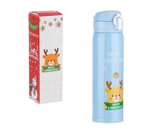 Термос, 500 мл, нержавеющая сталь, MERRY CHRISTMAS, голубой, PERFECTO LINEA