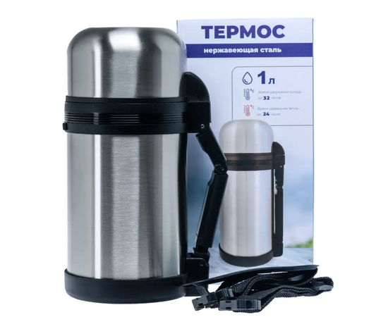 ТЕРМОС УНИВЕРСАЛЬНЫЙ из нержав. стали 1 л с ручкой и ремешком