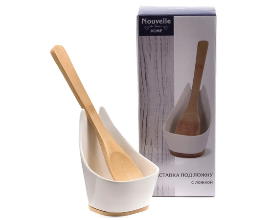 ПОДСТАВКА ДЛЯ ЛОЖКИ фарфор. 11*10см + ложка бамбуковая 22см