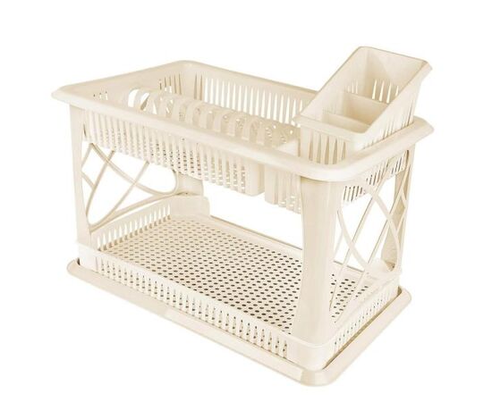 Сушилка для посуды и столовых приборов двухъярусная – удобный аксессуар, который позволяет сушить и хранить еще большее количество посуды на кухне. Имеет секции для тарелок и отдельную сушилку для столовых приборов – это дает возможность организовать оптимальное хранение и сушку, а также сэкономить свободное пространство. При необходимости можно использовать сушилку под столовые приборы как самостоятельный предмет в шкафу или возле раковины. Посуда и приборы высыхают намного быстрее благодаря дизайну с отверстиями. Сушилка имеет поддон для стока воды, за которым просто ухаживать и содержать в чистоте. Легкий, прочный, пищевой пластик прослужит долгие годы и будет безопасен для здоровья. Можно использоваться как в кухонном шкафу, так и выставить на рабочую поверхность.