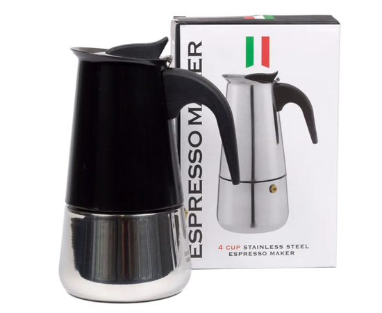 КОФЕВАРКА ГЕЙЗЕРНАЯ метал. с пластм. ручкой "Итальяно" на 4 чашки 200 мл