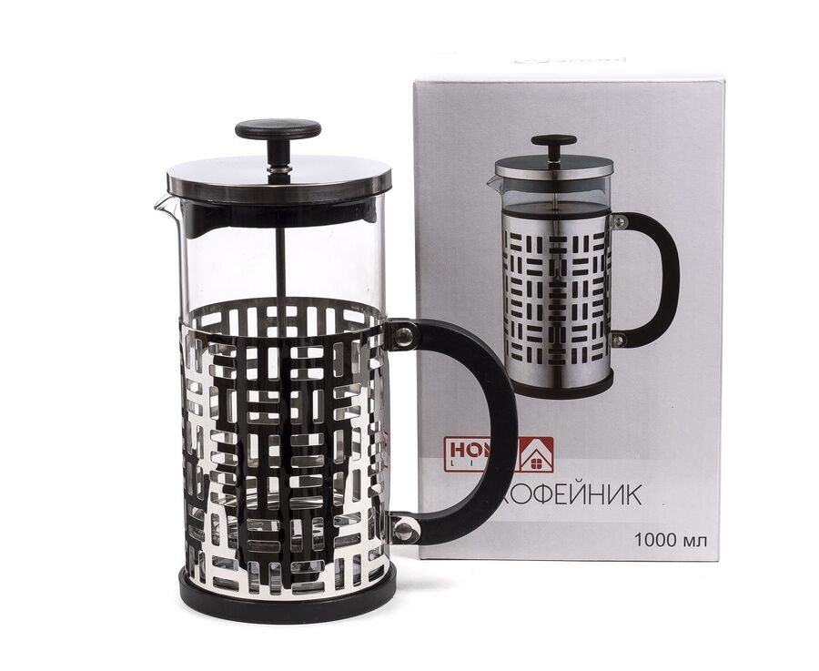 КОФЕЙНИК С ПРЕССОМ (френч-пресс) стекло/металл 1 л