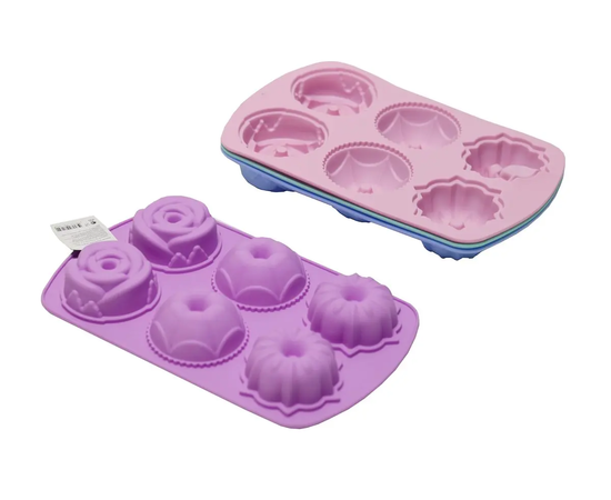 ФОРМА ДЛЯ ВЫПЕКАНИЯ силиконовая "Цветочный микс" 7*7*3,5см/ 27*17*3,5 см на 6 ячеек