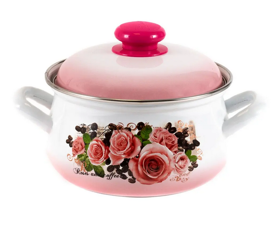 КАСТРЮЛЯ металл. эмалир. "Розы и кофе" 2 л