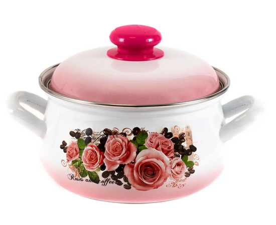 КАСТРЮЛЯ металл. эмалир. "Розы и кофе" 3 л