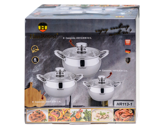 НАБОР ПОСУДЫ из нержавеющей стали 6 пр.: 3 кастрюли 24/20/18 см с крышками