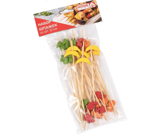 НАБОР ШПАЖЕК деревянных "Фрукты" 25 шт. Длина 12 см. Используется для пищевых продуктов. Для одноразового использования. Срок хранения - не ограничен.