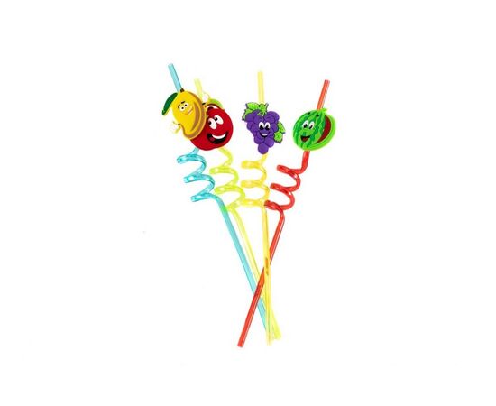 НАБОР СОЛОМОК ДЛЯ ПИТЬЯ пластм. "Весёлые фрукты" 4 шт. 27 см