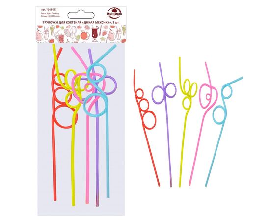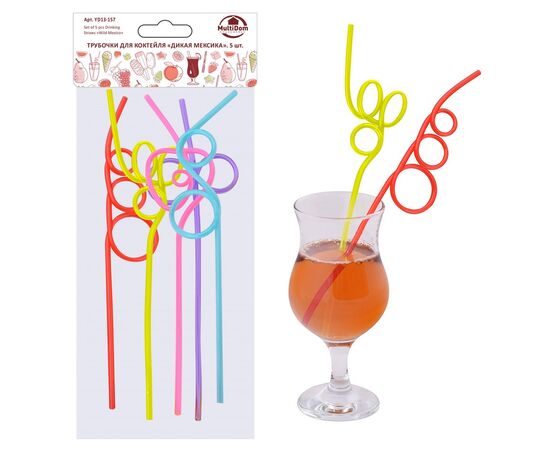 Трубочки для коктейля Дикая Мексика 5 шт 26 см арт. YD13-157. Разноцветные трубочки для коктейля «Дикая Мексика» — актуальное дополнение к любой вечеринке. Трубочки будут кстати на детском празднике, молодежной вечеринке, дне рождения, семейных посиделках. Они станут украшением напитка сами по себе, а также в сочетании с фруктами и другими коктейльными аксессуарами. Изготовлены из пластмассы (PETG). Подходят для многоразового использования, после применения промойте в проточной воде.