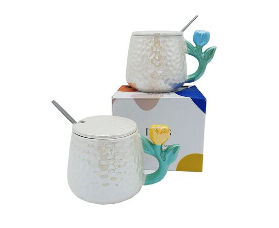 Кружка с ложкой и крышкой в наборе 400мл 8х8,5см