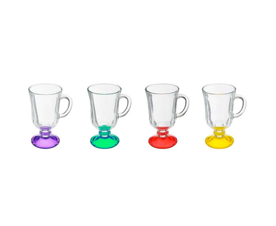 Кружка стеклянная Глинтвейн с цветным дном, 200 мл – удобная чашка на ножке для горячих и холодных напитков. Изготовлена из ударопрочного стекла, отлично впишется в любой кухонный интерьер.