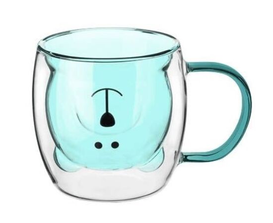 Кружка стеклянная с двойными стенками, 250 мл, синяя, серия Bear, PERFECTO LINEA