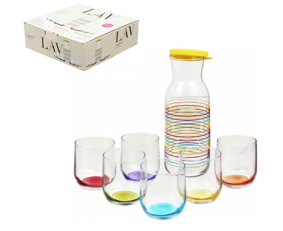Набор 1 кувшин 1,2 л + 6 стаканов 0,315 л LAV Rainbows (LV-RAINBOWS1) прекрасно подойдет для хранения и красивой подачи любых жидких продуктов. Наличие крышки у кувшина облегчит пользование и создаст герметичность.