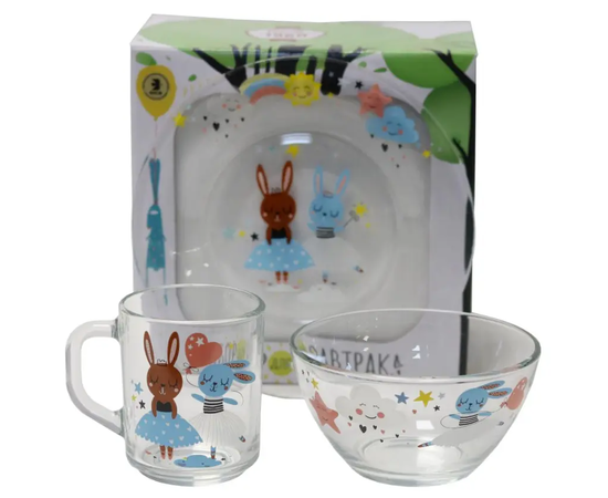 НАБОР ДЛЯ ЗАВТРАКА стеклянный детский "Балерины" 3 пр.: кружка, салатник, тарелка