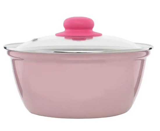 Салатник эмал. 2,0л. розово-сиреневый со стекл.крышкой, арт.ЭТ-72605