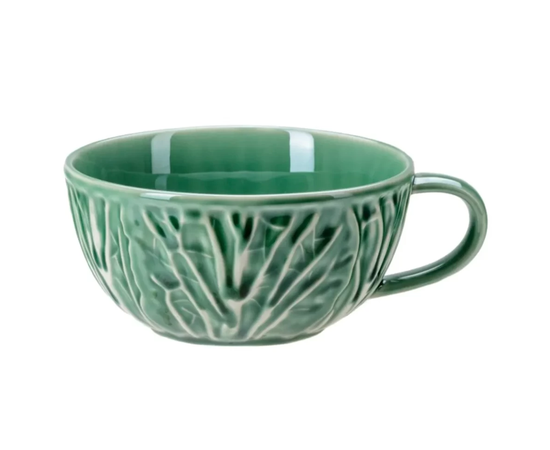 Эта изысканная бульонница выполнена в оригинальном дизайне, напоминающем свежие капустные листья, что добавляет нотку природы и уюта на ваш стол.