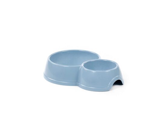 Миска для животных №10 двойная, 294х215 мм, 1,05 литра (серо-синяя)