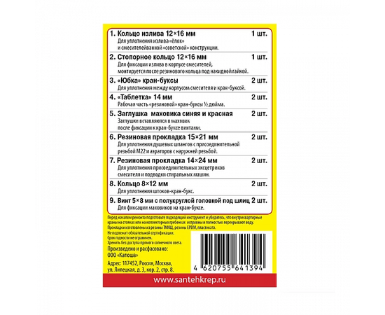 Рем.набор "Сантехник" №7 (для ремонта рос. смесителей)/Капелька/