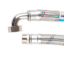 Гибкая подводка 30 мм представляет собой шланг для воды из EPDM (нетоксичный каучук) оплетенный нитью из нержавеющей стали. Оплетка из восококачественной нержавеющей стали. Оплетка с вкраплениями красных и синих нейлоновых нитей, характеризующих горячее и холодное водоснабжение.